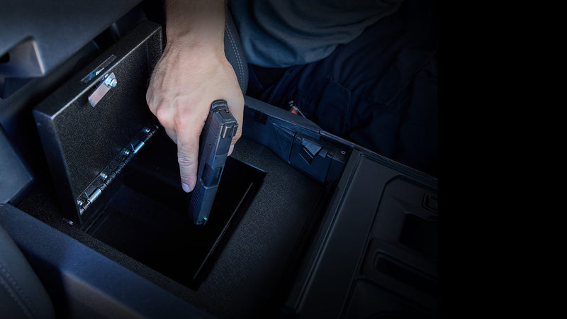 As a convenient, on-the-go storage option, our Transporter™ is available for purchase, complete with one of our great locking mechanisms. It is built from the same heavy-gauge steel as our console installed safes, providing secure and convenient storage to prevent unauthorized access to your valuables.