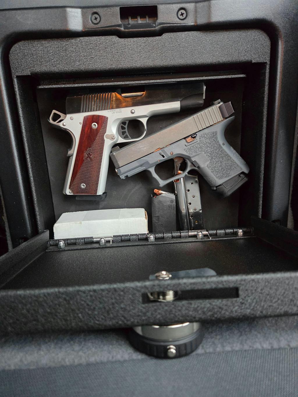 PLEASE NOTE: This safe is compatible with the pictured bench seat console variant. Check your vehicle's configuration prior to purchase to confirm fit. If your vehicle has more of a cut out back please see our part number 1128. This vault was designed to install inside the compartment located under the front middle seat.