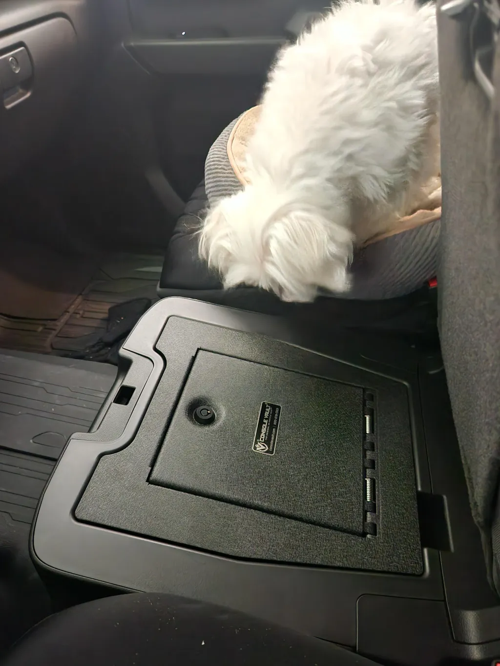 This application works in the GMC 2019 - 2026, 1500 series with 40/20/40 bench seats. The safe fits into the compartment located under the front middle seat.